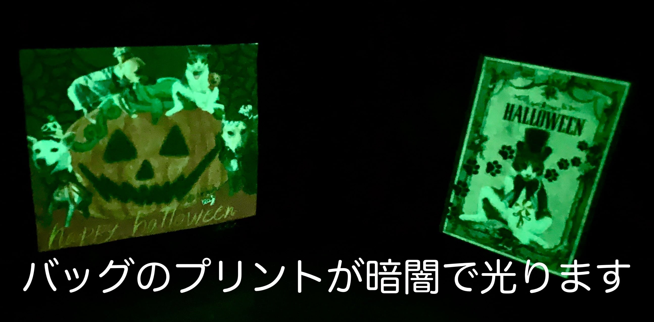 ハロウィーンにピッタリの、暗闇で光るミニバッグセットです。